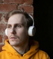 A food stall setup featuring large brass pots, stacks of ceramic plates, and a variety of Indian street food items, including a large tray of seasoned rice garnished with onions and spices. Plastic bags full of crispy snacks are placed nearby, with a person serving them into smaller containers.